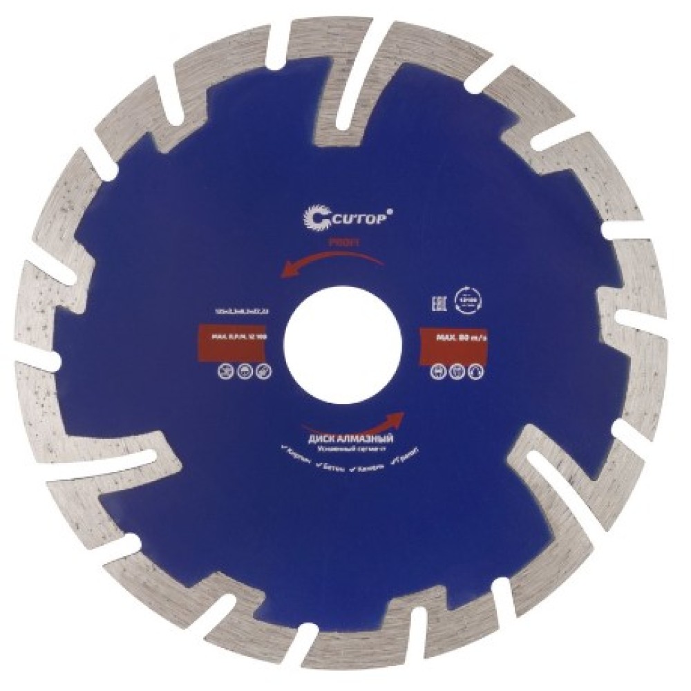 Диск отрезной алмазный сегментный усиленный турбо CUTOP 66-23030 предназначен для резки камня, гранита, бетона, кирпича. Подходит для сухой и влажной резки.