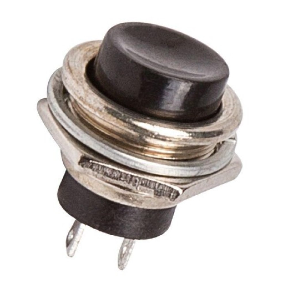 Выключатель-кнопка металл 250V 2А (2с) OFF-(ON) O16.2 черная предназначена для коммутации электрических цепей переменного тока напряжением до 250В путем включения-выключения питающего провода. Кнопки применяются в качестве комплектующих изделий различного электрооборудования (в аудио системах, блоках питания, электроустановках на различных производствах, автомобилях, и многих других местах).