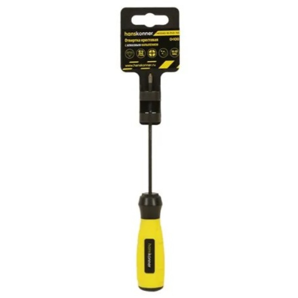 Крестовая отвертка Hanskonner 0x100 алмазный наконечник, твердость 59 HRC, S2, HK1040-16-PH0-100 подходит для работы со сложным и прочным крепежом. Инструмент оснащен нестираемым наконечником, поэтому можно прикладывать больше усилий. Рукоять имеет специальный профиль для удобства вращения. Ладонь не соскальзывает при работе - меньше риск получить травму.
