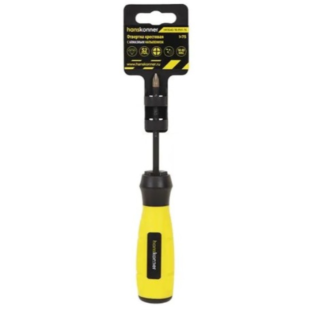 Крестовая отвертка Hanskonner HK1040-16-PH1-75 с алмазным наконечником предназначена для работы с крепежом типа PH1. Инструмент изготовлен из стали марки S2 с твёрдостью 59 HRC, что обеспечивает прочность и износостойкость.