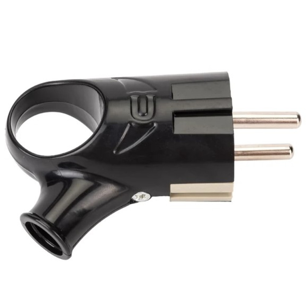 Вилка Евро угловая с кольцом 16А черная IN HOME