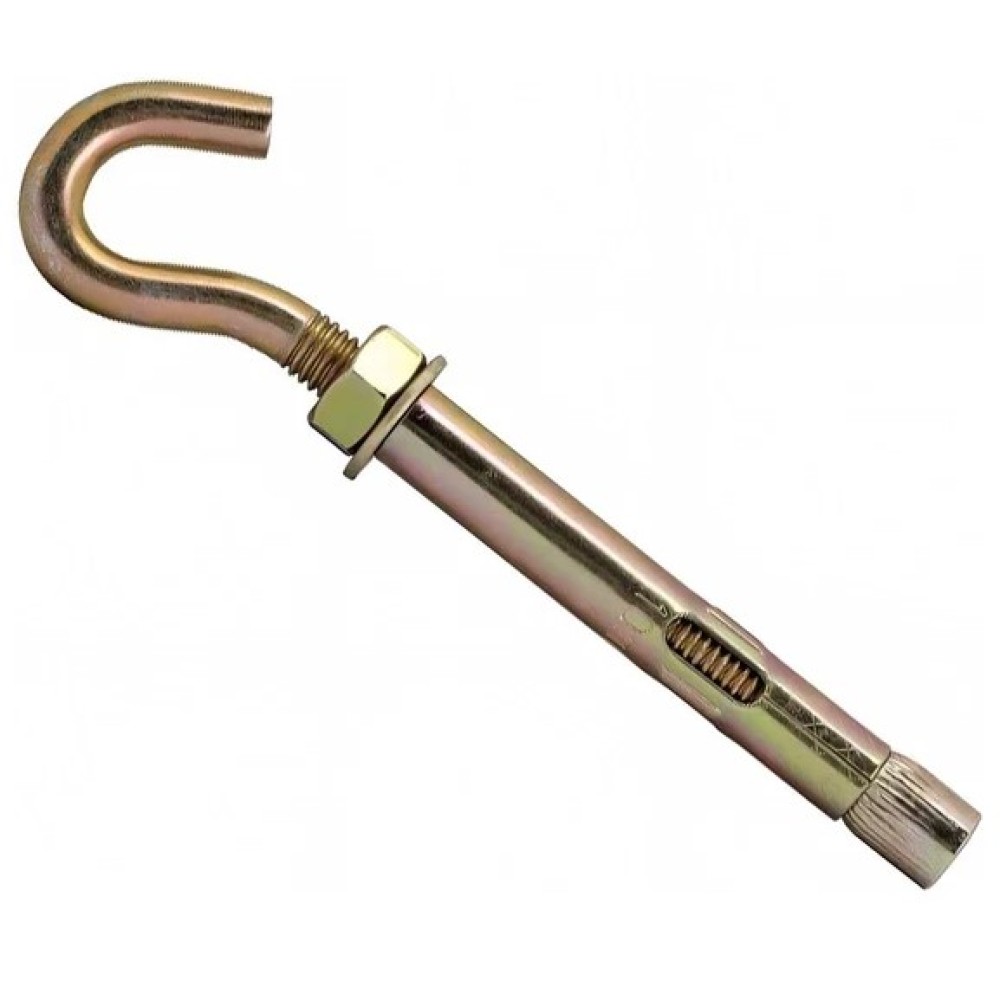 Анкерный болт с крюком используется для установки строительных лесов, монтажа подвесных систем, оборудования, такелажных систем и растяжек. Применяется в полнотелом кирпиче, бетоне и природном камне.