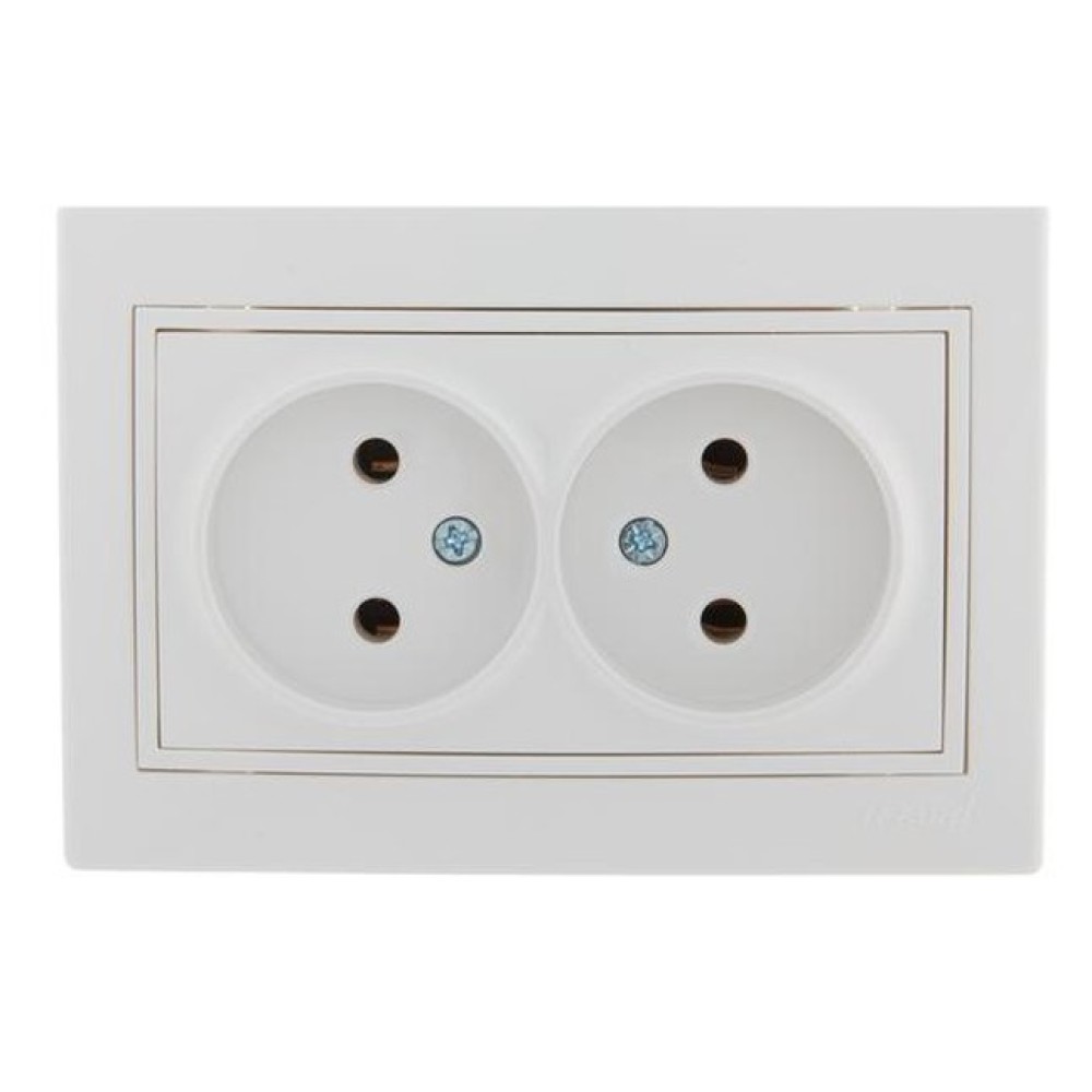 Серия "Мира" для скрытой установки сочетает в себе гармонию форм с изяществом плавных линий и гладкой фактурой. Изделия данной серии удачно вписываются в самый изысканный интерьер и производят приятное впечатление. Розетка двойная б/з (керамика). Особенности заключаются в европейском дизайне; в повышенной безопасности негорючего поликарбонатного ПК-пластика; в более прочном и устойчивом к механическому воздействию покрытии; в простом монтаже и демонтаже.