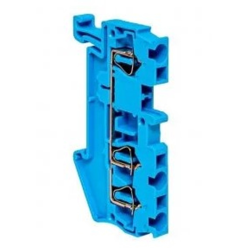 Колодка клеммная пружинная ST-2.5 28А 3 вывода синяя EKF предназначена для использования в распределительных щитах для подключения и разветвления фазных, нулевых и проводников заземления различных сечений.