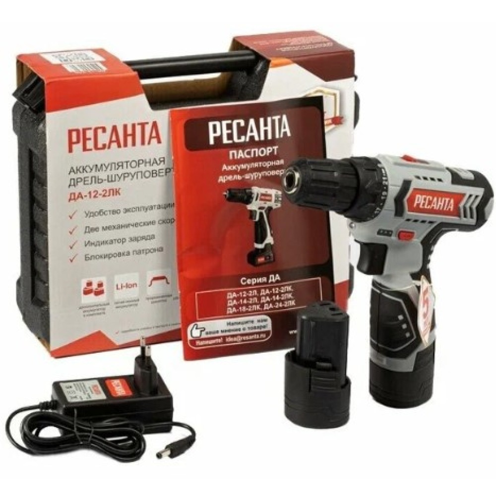 Дрель-шуруповерт аккум. ДА-12-2ЛК Ресанта 12В, 2 аккум. Li-ion 2Ач, кейс