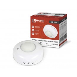 Код товара: 438062 Датчик движения ДД 020В-W белый 800Вт. 360гр. 6м, IP33, белый IN HOME