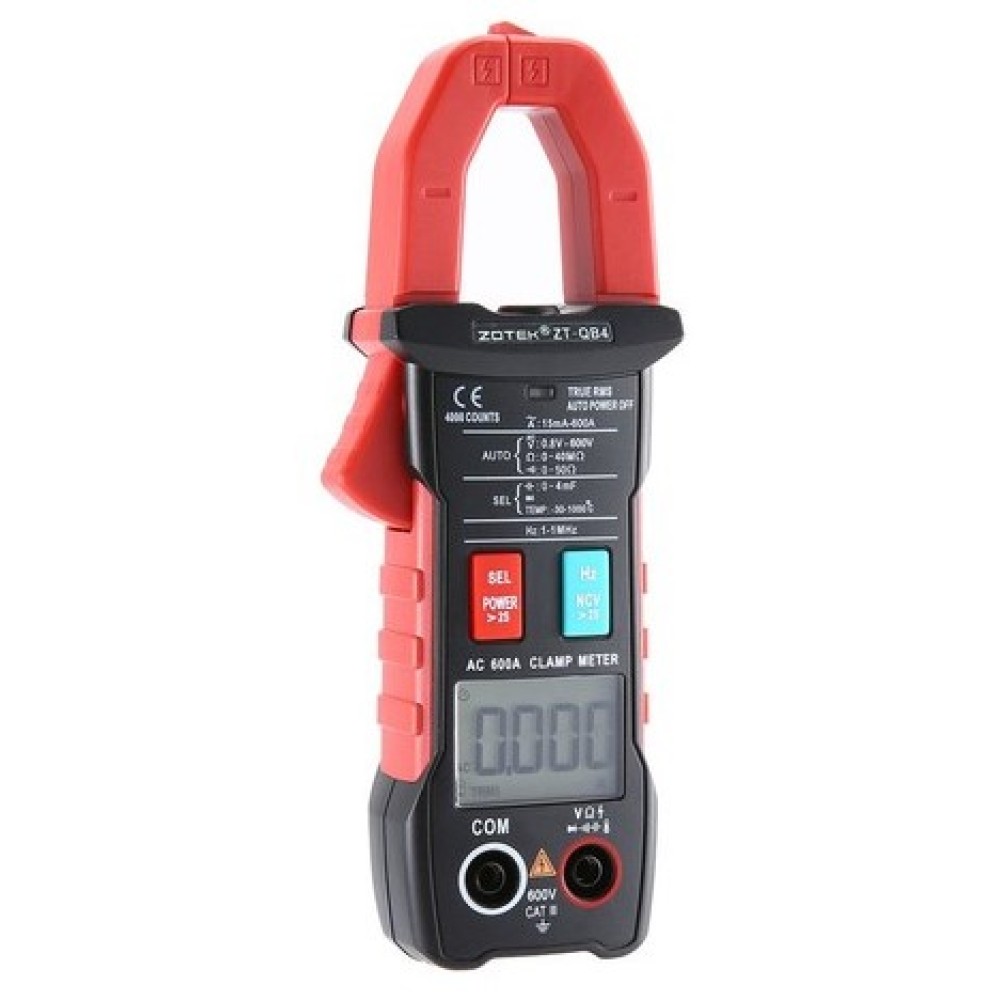 Токовые клещи ZOTEK ZT-QB4 TRMS — это многофункциональный измерительный прибор, который позволяет измерять переменный ток до 600 А, напряжение (переменное и постоянное) до 600 В, сопротивление, частоту, ёмкость, температуру, а также определять наличие напряжения бесконтактным способом (NCV) и проверять непрерывность цепи.