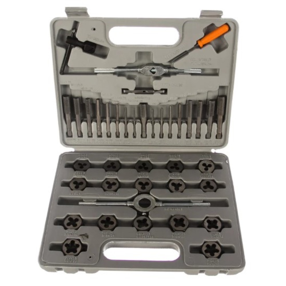 Набор метчиков и плашек Sparta 773155 (40 предметов в пластиковом боксе) предназначен для нарезания внешней и внутренней резьбы размером от М3 до М12. Включает плашко- и метчикодержатели, что позволяет работать как с глухими, так и со сквозными отверстиями. Подходит для ремонтных работ, в том числе для домашнего применения.