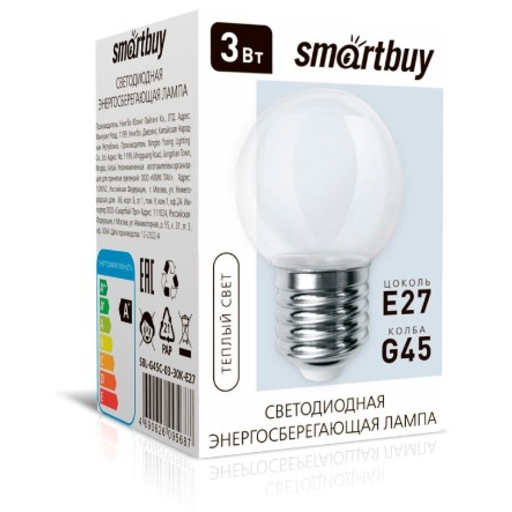 Светодиодная (LED) лампа CLEAR Smartbuy-G45-03W/3000/E27 (SBL-G45C-03-30K-E27) — лампа общего и декоративного освещения.