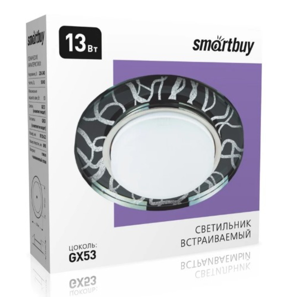 Встраиваемый светильник Smartbuy под лампу GX53 белый/чёрный предназначен для точечного или декоративного освещения внутри помещения.