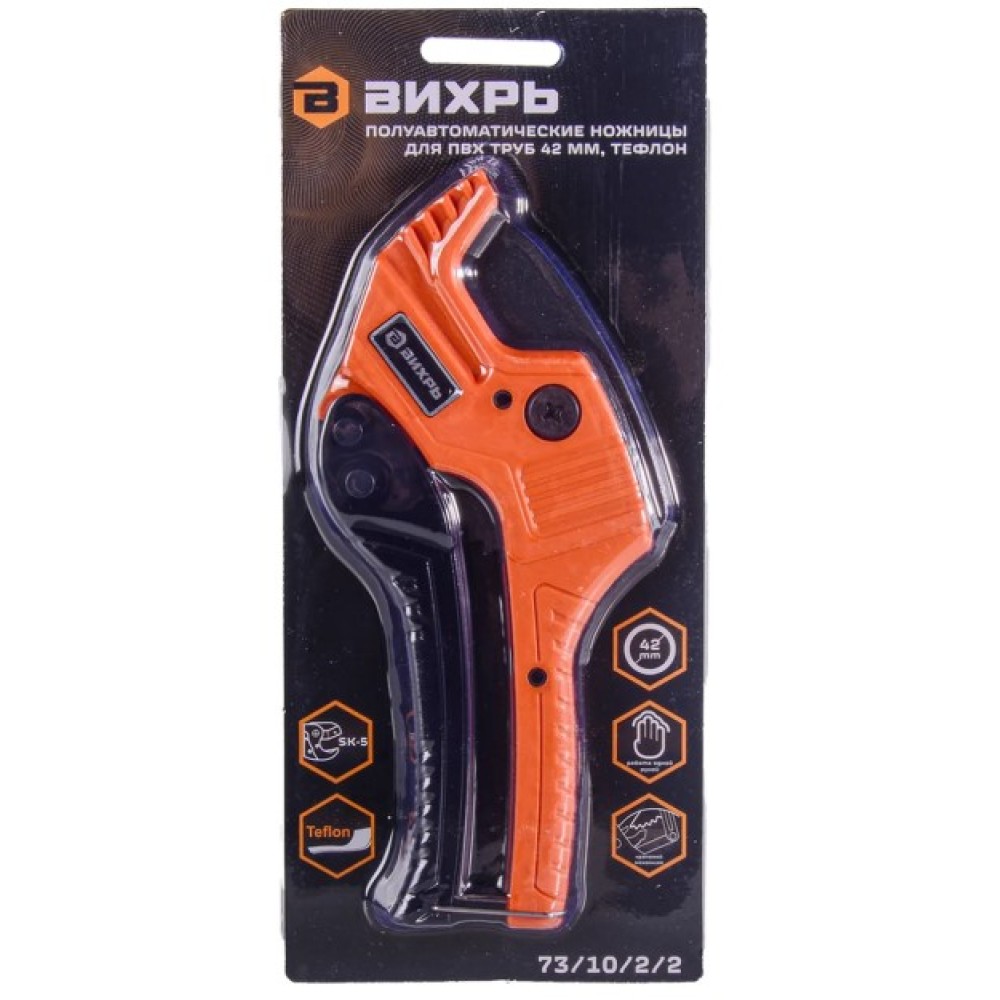 Полуавтоматические ножницы для ПВХ труб 73/10/2/2 (Вихрь) предназначены для резки труб диаметром до 42 мм, а также пластиковых плинтусов, профилей и резиновых шлангов. Инструмент подходит для монтажа водопроводных и отопительных систем.